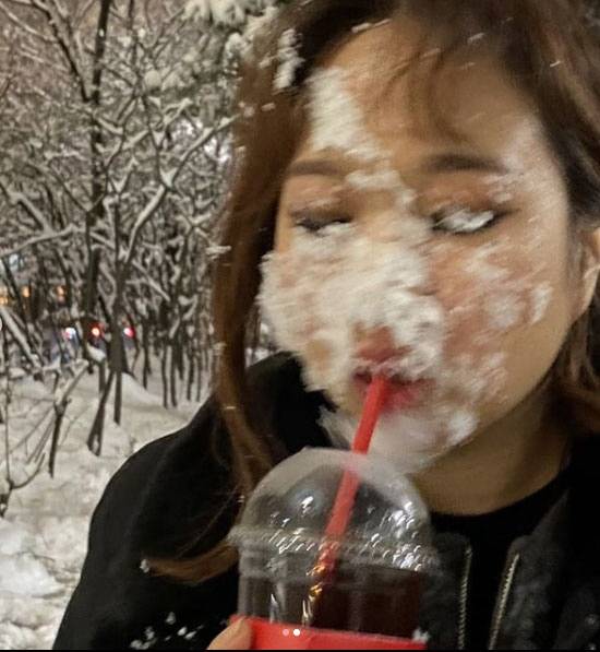 공개한 사진에는 홍현희가 아이스 음료를 먹고 있는 모습이다. 눈이 쌓여 있는 길에서 아이스 음료에 얼굴마저 얼어버린 홍현희의 개그감이 큰 웃음을 안긴다.