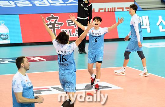 [MD포토] 우리카드 '풀세트 접전 끝에 대한항공 격파'
