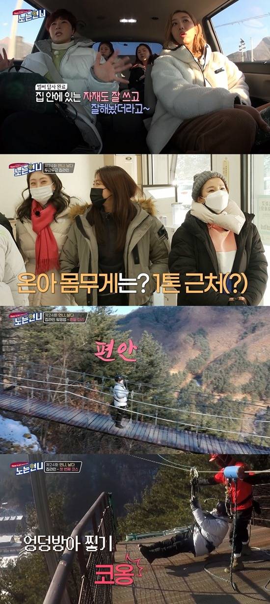 집라인 장소에 도착해 안전에 관한 체험 동의서를 작성하며 김온아는 "현역이다", 박세리는 "아직 결혼도 안 했다"라며 약한 모습을 보였다. 다른 언니들도 저협압, 알레르기, 근골격계 질환을 언급하며 한마음으로 집라인을 겁냈다.