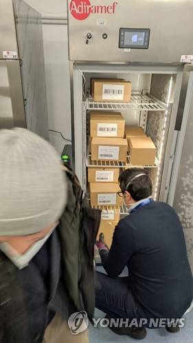 epa08933014 A handout photo made available by the press office of the Italian National Institute of Health (Istituto Superiore di Sanita, ISS) shows the first load of 47,000 doses of vaccine against the coronavirus disease (COVID-19), of the US pharmaceutical company Moderna, arriving at the National Institute of Health in Rome, Italy, 12 January 2021. The doses will then be distributed in various Italian regions. HANDOUT EDITORIAL USE ONLY/NO SALES
