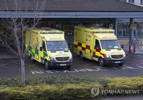 epa08933024 Emergency ambulances pictured at an Accident and Emergency Department of a Dublin City Hospital, in Dublin, Ireland, 12 January 2021. Ireland is currently witnessing a enormous surge of COVID-19 cases after the Christmas season. EPA/STR