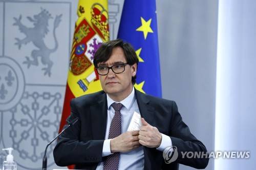 epa08933033 Health Minister Salvador Illa at the end of the press conference after the cabinet meeting held at Moncloa Palace in Madrid, Spain, 12 January 2021. EPA/Ballesteros