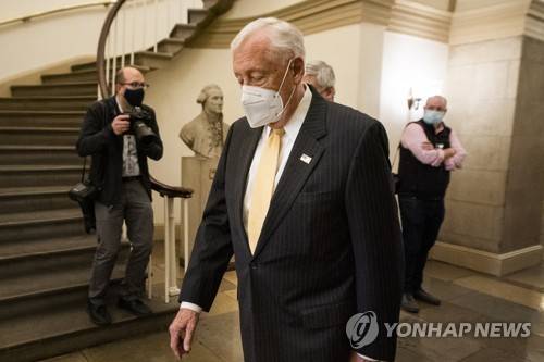 epa08933060 Democratic House Majority Leader Steny Hoyer walks through the Capitol after the House introduced articles of impeachment against US President Donald J. Trump in Washington, DC, USA, 12 January 2021. Democrats hope to impeach the president a second time for incitement of insurrection following the attack on the Capitol last week as lawmakers worked to certify Joe Biden as the next President of the United States.