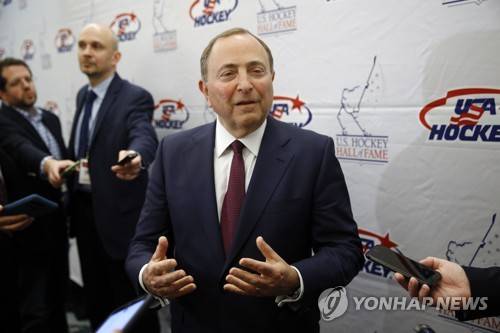 FILE - NHL Commissioner Gary Bettman speaks with members of the media before being inducted into the U.S. Hockey Hall of Fame in Washington, in this Thursday, Dec. 12, 2019, file photo. Like the NBA, the NHL is going forward with a season without a bubble. Commissioner Gary Bettman, Players' Association executive director Don Fehr and other top officials explain how hockey got to this point with a CBA that may have only staved off headaches and playing in mostly empty home arenas to start. (AP Photo/Patrick Semansky, File) DEC. 12, 2019, FILE PHOTO