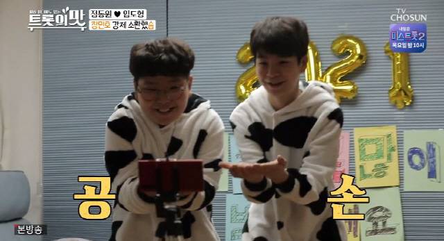 정동원은 방학계획표를 써야한다는 임도형에게 "아직도 그런걸 하냐"며 중학생 형으로서 거들먹거리면서도 동생을 위해 숙제를 도왔다. '대만가기' '맛집가기'는 시국 때문에 불가능한 상황, '세배하러 다니기'를 위해 영상통화로 인사하기로 했다. 새해인사 전용 스튜디오까지 꾸민 두 사람은 소 잠옷을 입고 장민호 삼촌에게 전화를 걸었다. 장민호는 삼촌 미소를 지으며 정동원 임도형을 반겼다. 장민호에 이어 조영수에게도 안부와 신년 인사를 건넸다.