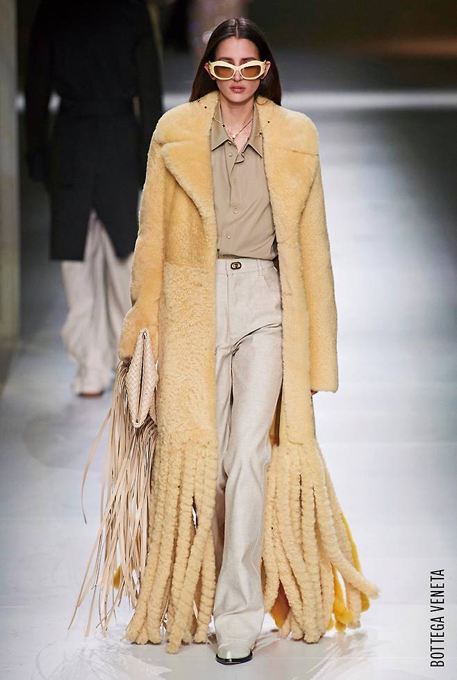 이번 시즌 오버사이즈 트렌드가 두각을 드러냈습니다. 이런 흐름에 맞춰 디자이너들이 선택한 소재는 바로 시어링입니다. 시어링은 풍성할수록 드라마틱한 효과를 내고, 철마다 깎는 양털을 이용하기 때문에 동물을 해치지 않고 얻을 수 있는 소재이죠. 보테가 베네타의 맥시 시어링 코트처럼 포근하게 연출하거나, 드리스 반 노튼의 룩처럼 포인트 요소로 활용해 화려하고 카리스마 넘치는 분위기를 만들 수도 있습니다. 평소 캐주얼한 스타일을 즐긴다면 셀린 룩을 참고해 보세요. 짧은 길이의 더플코트 디자인이 사랑스러운 무드를 완성해 줄 겁니다.