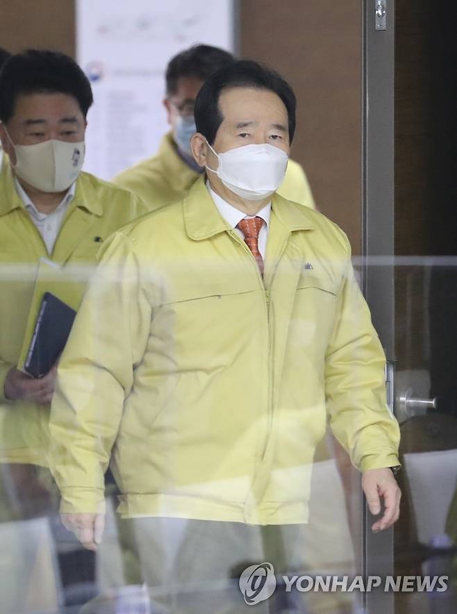 중대본 회의 참석하는 정세균 총리