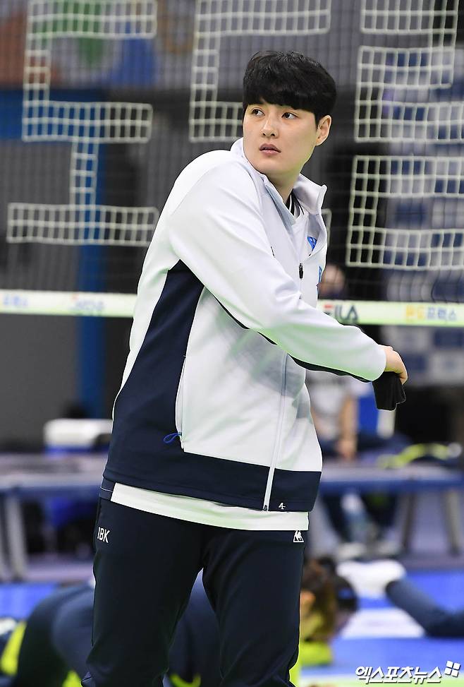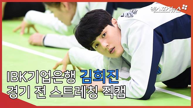 이날 경기에 앞서 IBK기업은행 김희진이 스트레칭을 하며 웜업하는 모습을 영상으로 담았다.