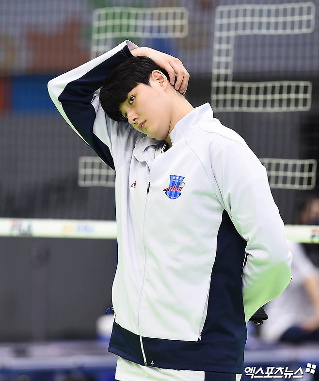 '희글이' 김희진, 경기 전 스트레칭 직캠[엑's 스케치]