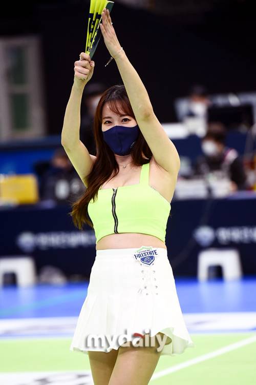 [마이데일리 = 수원 곽경훈 기자] 현대건설 치어리더 김한나가 12일 오후 경기도 수원실내체육관에서 진행된 '2020-2021 도드람 V-리그' 현대건설-IBK기업은행의 경기에서 응원을 펼치고 있다.- ⓒ마이데일리(www.mydaily.co.kr). 무단전재&재배포 금지 -