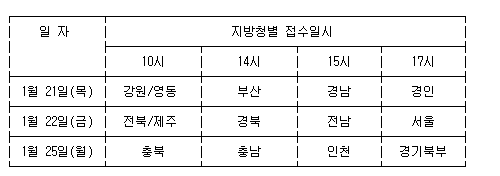 [표] 지방병무(지)청별 본인선택 일정