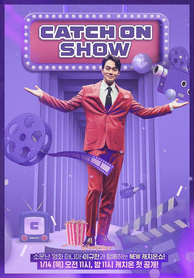 그는 앞서 공개된 예고편을 통해 "하루에 영화 한 편씩 꼼꼼하게 감상한다"고 밝히는 등 ‘영화 마니아’의 면모를 보여주며 ‘캐치온쇼’ MC에 걸맞은 모습을 보여줬다. 스스로 훤칠한 외모, 타고난 순발력, 재치있는 유머 감각을 시청자들에게 어필하며 ‘캐치온쇼’ MC로 타고난 것 같다고 너스레를 떨기도. 영화를 애정 하는 이규한과 ‘캐치온쇼’의 특급 만남이 어떤 시너지를 발휘할지 궁금증을 더한다.