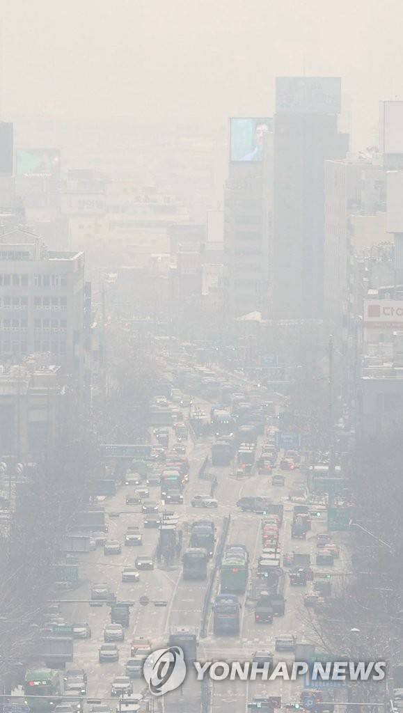 (서울=연합뉴스) 류영석 기자 = 수도권 지역에 미세먼지 농도가 '나쁨'수준을 보이고 있는 13일 오전 서울 종로 일대가 뿌옇다. 2021.1.13