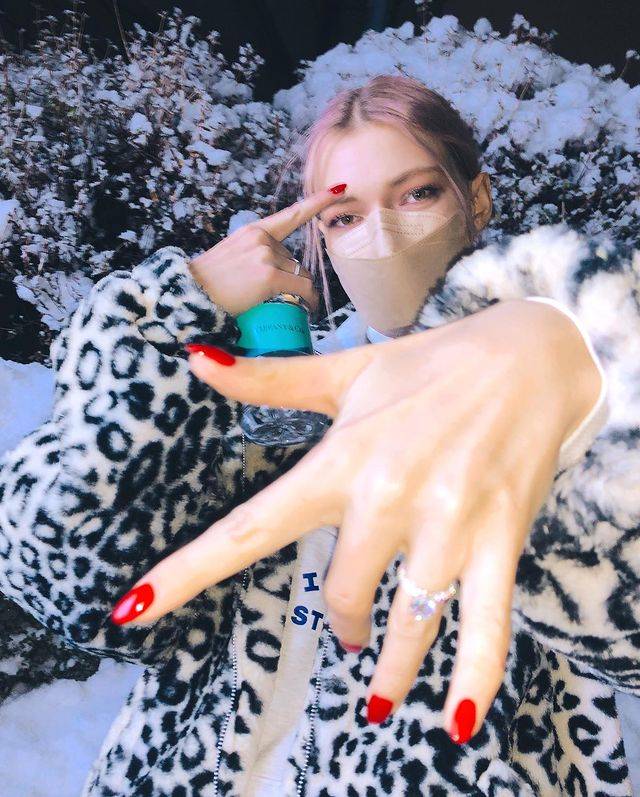 [엑스포츠뉴스 이송희 기자] 빈지노의 연인 스테파니 미초바가 프러포즈 반지를 자랑했다.