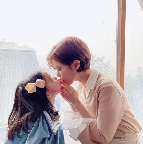 배우 이윤지가 딸 라니와 예쁘게 입맞춤했다.