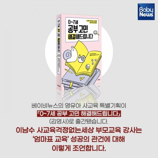 베이비뉴스의 영유아 사교육 특별기획이 「0~7세 공부 고민 해결해드립니다」(김영사)로 출간됐습니다. 이남수 사교육걱정없는세상 부모교육 강사는 '엄마표 교육' 성공의 관건에 대해 이렇게 조언합니다.