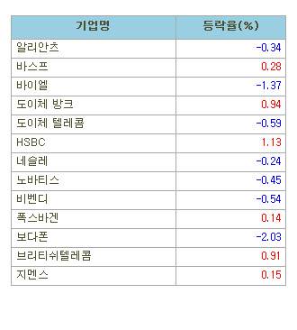 [표]유럽 주요기업 주가(1/12)
