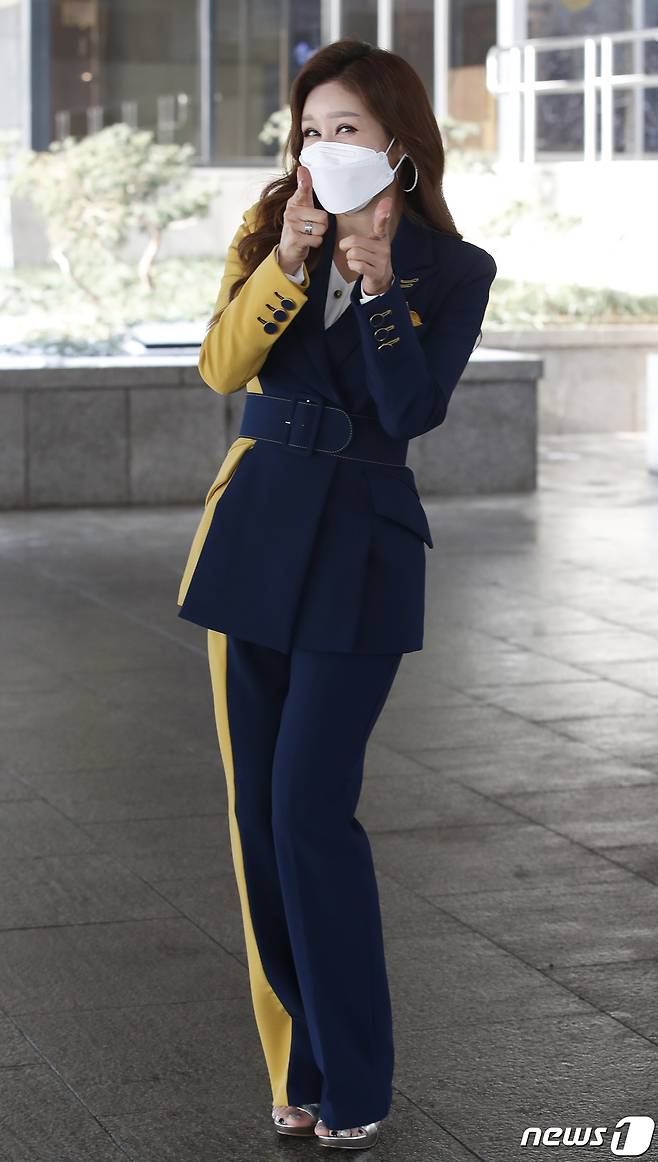 (서울=뉴스1) 권현진 기자 = 가수 김혜연이 13일 서울 여의도 KBS에서 열린 방송 녹화를 마치고 퇴근을 하며 인사를 하고 있다. 2021.1.13/뉴스1
