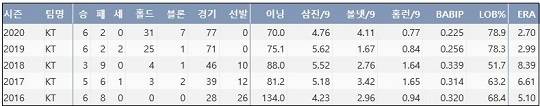 | ▲ kt 주권 최근 5시즌 주요 기록 |
