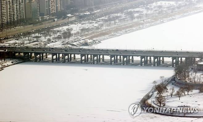 한강 위로 하얗게 쌓인 눈