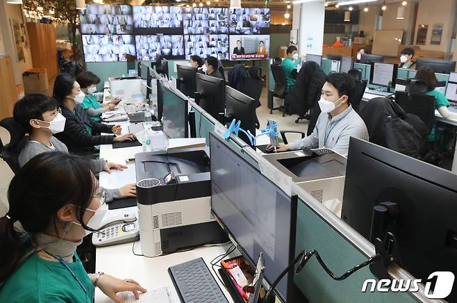 (서울=뉴스1) 송원영 기자 = 13일 오전 서울 동대문구 서울시립대학교 기숙사에 마련된 신종 코로나바이러스 감염증(코로나19) 수도권 생활치료센터에서 서울아산병원 의료진들이 분주히 근무하고 있다. 이곳은 코로나19 무증상 및 경증 환자를 위한 곳으로, 지난해 12월31일 부터 본격적인 업무를 시작했다. 2021.1.13/뉴스1