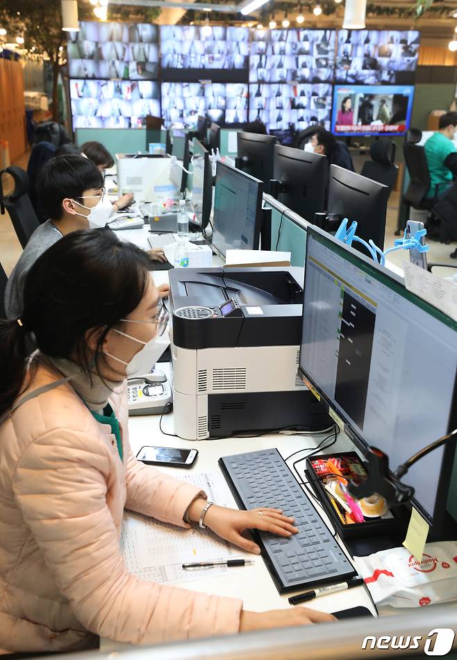 (서울=뉴스1) 송원영 기자 = 13일 오전 서울 동대문구 서울시립대학교 기숙사에 마련된 신종 코로나바이러스 감염증(코로나19) 수도권 생활치료센터에서 서울아산병원 의료진들이 분주히 근무하고 있다. 이곳은 코로나19 무증상 및 경증 환자를 위한 곳으로, 지난해 12월31일 부터 본격적인 업무를 시작했다. 2021.1.13/뉴스1