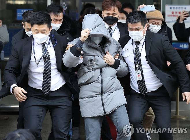 (서울=연합뉴스) 홍해인 기자 = 16개월 된 입양 딸 정인 양에 대한 아동학대 혐의로 불구속 기소된 양부 안 모 씨가 13일 1심 첫 공판이 끝난 뒤 서울 양천구 남부지방법원에서 나오고 있다. 2021.1.13