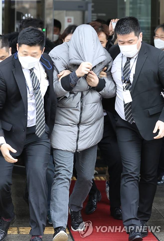 (서울=연합뉴스) 홍해인 기자 = 16개월 된 입양 딸 정인 양을 학대해 숨지게 한 혐의를 받는 양부모의 첫 재판이 열린 13일 서울남부지법에서 양부 안 모 씨가 재판을 마치고 나오고 있다. 2021.1.13
