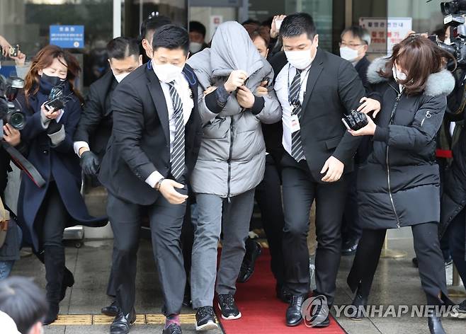 (서울=연합뉴스) 홍해인 기자 = 16개월 된 입양 딸 정인 양을 학대해 숨지게 한 혐의를 받는 양부모의 첫 재판이 열린 13일 서울남부지법에서 양부 안 모 씨가 재판을 마치고 나오고 있다. 2021.1.13