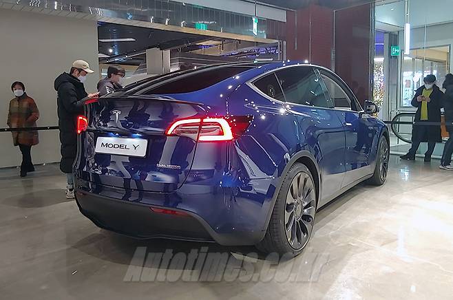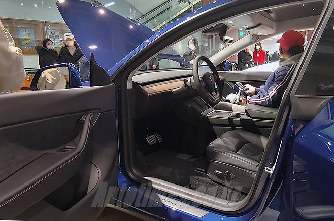 테슬라코리아가 롯데백화점 영등포점에 팝업스토어를 열고 모델Y(5인승)를 국내에 선보였다.
