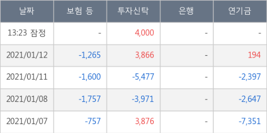[표] 주요 기관별 순매매량 (단위 주)