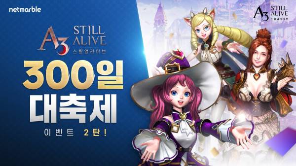 넷마블은 모바일 배틀로얄MMORPG 'A3: 스틸얼라이브'에서 300일 대축제 이벤트 2탄을 오는 27일까지 진행한다.