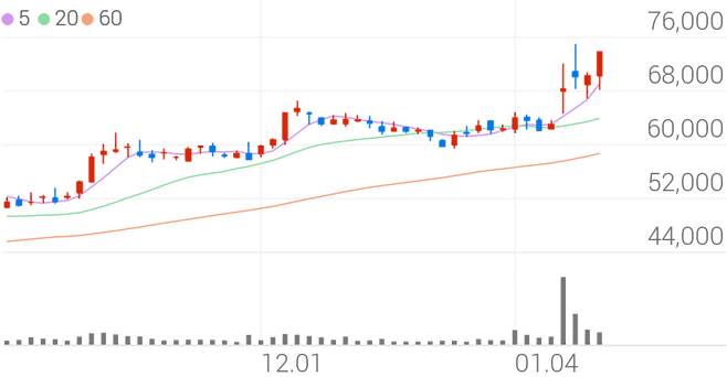 | 01월 08일 | 68,300 | +8.41% |