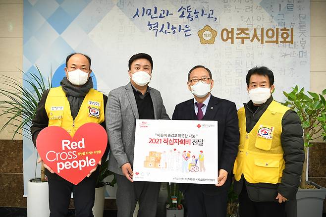 여주시의회 박시선 의장은 2021년도 적십자 특별회비 100만원을 대한적십자사 경기도지사에 전달했다. 전달식에는 윤신일 대한적십자사 경기도지사 회장과 여주시협의회 전·현직 협의회장(조승호,송춘석)이 함께했다.