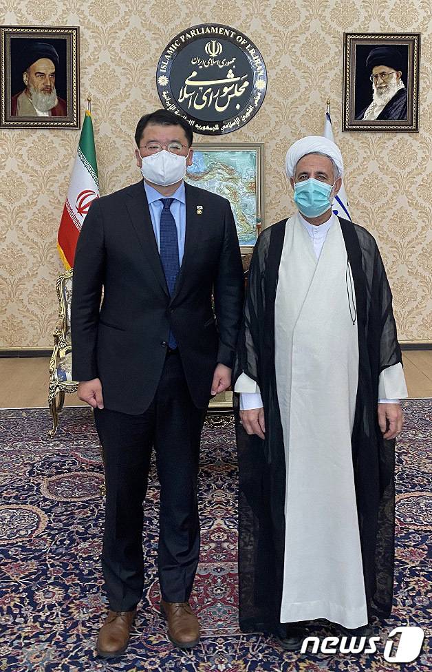 (서울=뉴스1) = 외교부는 최종건 1차관이 지난 10일(현지시간)부터 이란에서 한국 선박 억류에 대해 항의하고, 조속한 해제를 요구했다고 12일 전했다. 최 차관이 모즈타바 졸누리 이란 의회 국가안보외교정책위원장을 면담한 후 기념촬영을 하고 있다. (외교부 제공) 2021.1.13/뉴스1