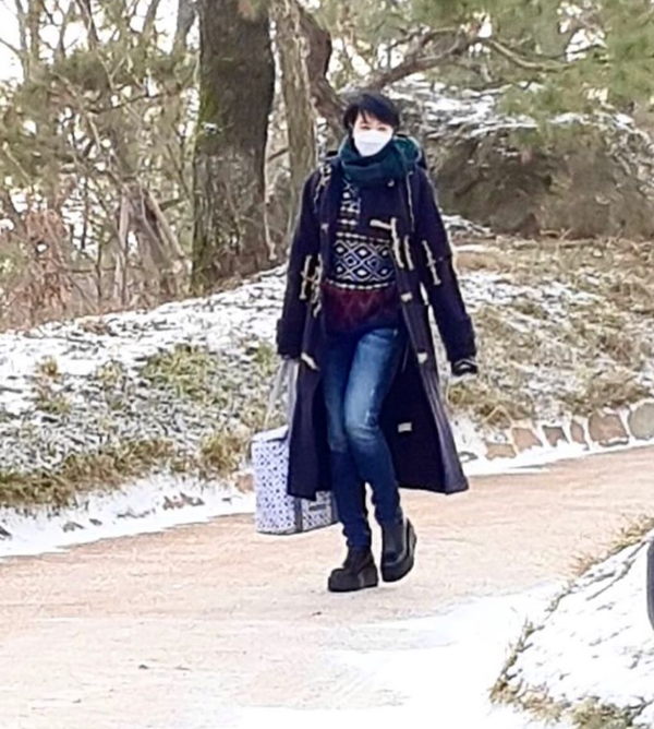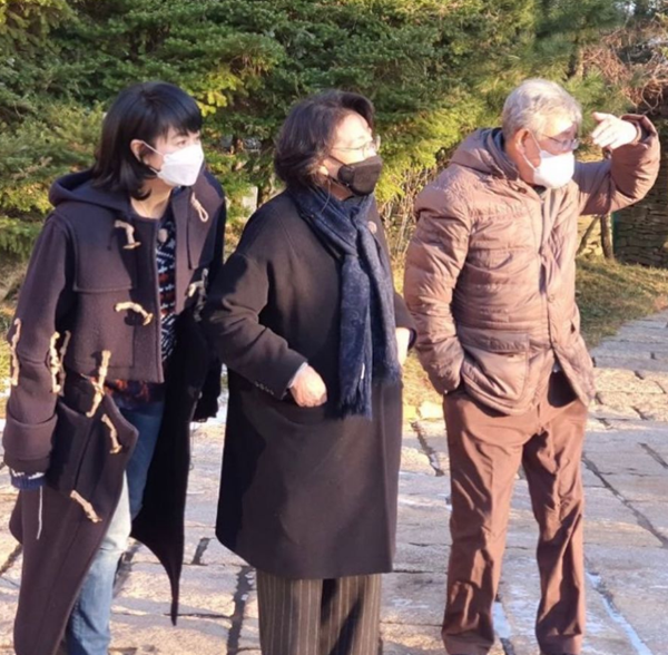사진 속 김혜수는 떡볶이 코트에 청바지 차림의 수수한 모습. 시크한 쇼트커트의 미모에 8등신 비율이 돋보인다. 또 다른 사진에서 그는 최불암·김민자 부부와 함께 강화도의 한적한 길을 걷고 있다.