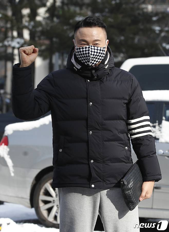 (서울=뉴스1) 권현진 기자 = 방송인 주영훈이 13일 서울 영등포구 여의도 KBS에서 열리는 KBS 2TV '트롯 전국체전' 촬영 차 방송국으로 들어서며 인사를 하고 있다. 2021.1.13/뉴스1