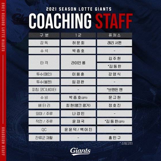 롯데 자이언츠가 2021시즌 1군 및 퓨처스(2군) 코칭스태프 구성을 완료했다.