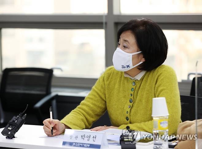 (서울=연합뉴스) 박영선 중소벤처기업부 장관이 13일 오후 서울 마포구 소상공인시장진흥공단 서울강원지역본부를 찾아 '소상공인 버팀목자금' 집행상황을 보고 받은 뒤 취재진의 질문에 답변하고 있다. 2021.1.13