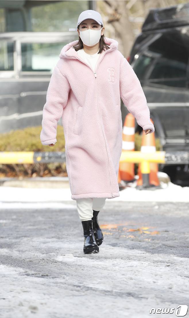 (서울=뉴스1) 권현진 기자 = 가수 송가인이 13일 서울 영등포구 여의도 KBS에서 열리는 KBS 2TV '트롯 전국체전' 촬영 차 방송국으로 들어서고 있다. 2021.1.13/뉴스1