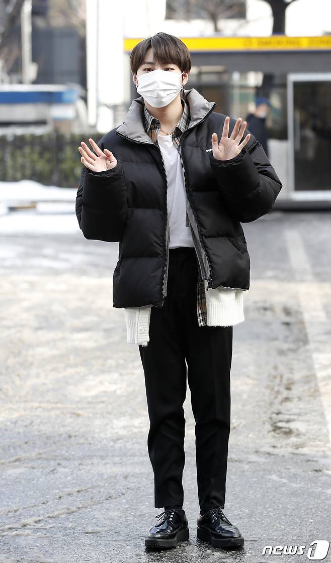 (서울=뉴스1) 권현진 기자 = 가수 하성운이 13일 서울 영등포구 여의도 KBS에서 열리는 KBS 2TV '트롯 전국체전' 촬영 차 방송국으로 들어서며 인사를 하고 있다. 2021.1.13/뉴스1