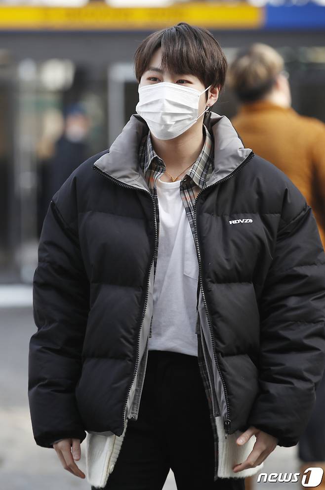 (서울=뉴스1) 권현진 기자 = 가수 하성운이 13일 서울 영등포구 여의도 KBS에서 열리는 KBS 2TV '트롯 전국체전' 촬영 차 방송국으로 들어서고 있다. 2021.1.13/뉴스1