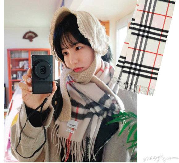 겨울 머플러를 논할 때 버버리의 캐시미어 체크 패턴을 빼놓을 수 없을 듯. 아이코닉하다는 표현이 어울릴 만큼 이 아이템을 대신할 겨울 머플러는 없을 듯하다. 클래식한 느낌 때문에 슈트나 코트 등 젠틀한 무드의 룩에만 잘 어울릴 거라고 생각한다면 오산. 맨투맨과 진으로 완성하는 스트리트 룩 또는 오버사이즈 셔츠와 플레어 미니스커트 같은 프레피 룩에 매치하면 경쾌하면서도 빈티지한 느낌을 연출할 수 있다. 배우 신예은은 캐주얼한 코트 위에 비슷한 톤의 머플러를 맨 뒤 레이스가 달린 귀여운 귀마개를 매치해 색다른 스타일링을 선보였다. 여기에 새침한 표정까지 더하니 사랑스러움 한도초과! 체크무늬 머플러를 두를 때 헤어는 깔끔하게 묶어 올리거나, 머리카락을 모두 머플러 안에 넣은 뒤 잔머리만 정리해줘야 깔끔하면서도 세련돼 보인다는 사실도 꼭 기억하자. 60만원대 버버리.
