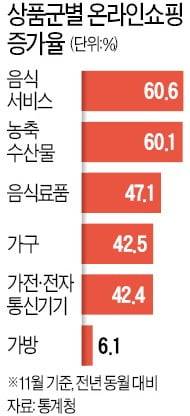 코로나19 사태가 이런 추세를 가속화시켰다. 통계청에 따르면 지난해 11월 온라인 쇼핑 거래액은 1년 전(12조8521억원)보다 17.2% 증가한 15조631억원이었다. 온라인 쇼핑 거래액이 15조원을 넘어선 것은 2001년 관련 통계가 작성된 이후 처음이다.