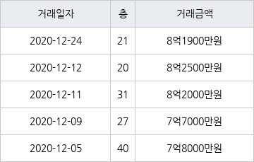 지난 2020년 12월 24일 같은 면적형인 21층 물건이 8억1900만원에 실거래된 것과 비교해 같은 가격이다.