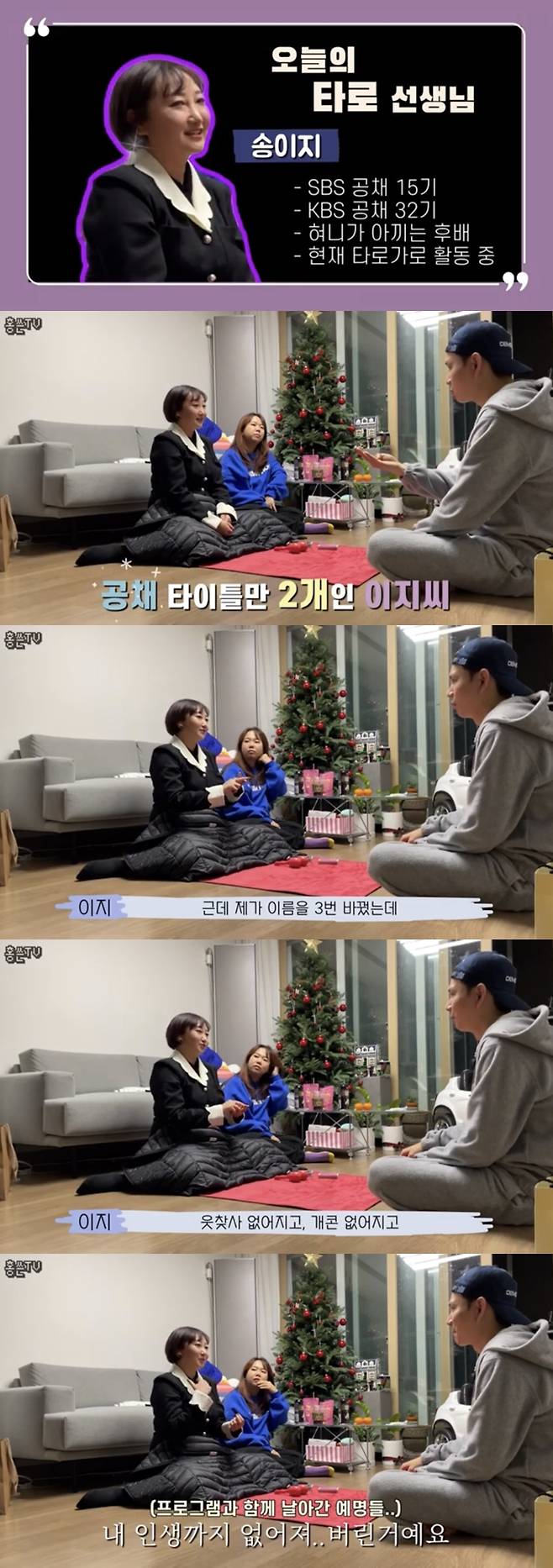 누리꾼들은 "타로쌤 개그우먼 바이브 어쩔 거야", "홍쓴 티비 꿀잼", "타로쌤 텐션 업이네요. 세 사람 케미 대박"이라고 반응했다.