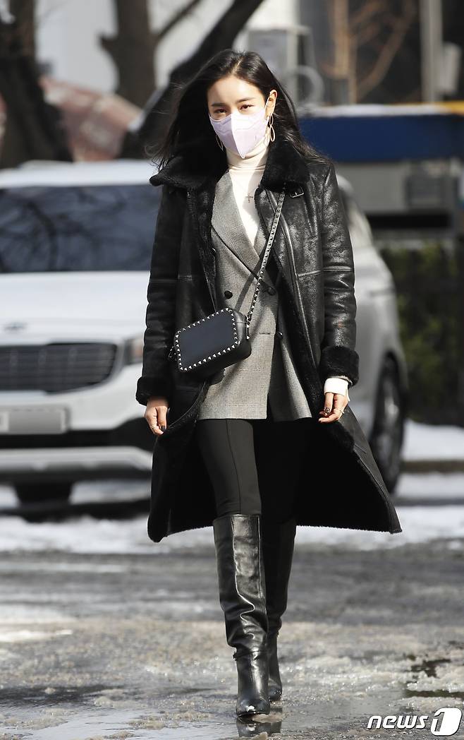 (서울=뉴스1) 권현진 기자 = 가수 조정민이 13일 서울 영등포구 여의도 KBS에서 열리는 KBS 2TV '트롯 전국체전' 촬영 차 방송국으로 들어서고 있다. 2021.1.13/뉴스1