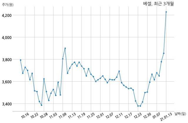 한편, 베셀은 장 마감 이후 해당 기업공시를 발표했으며 오늘 종가가 4,230원, 거래량은 1,386,984주로, 직전 거래일 대비 375원(+9.73%) 상승했다.