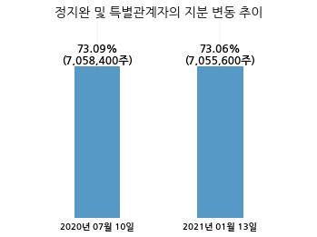 나우IB은 정지완 및 특별관계자의 지분율이 73.09%에서 73.06%로 변동했다고 13일 공시했다.