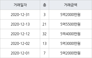 [이 기사는 조선비즈와 아티웰스가 공동으로 개발해 서비스하는 로봇 기사입니다.]국토교통부 실거래가 공개시스템에 따르면 지난 2020년 12월 31일 경기도 용인시 기흥구 신갈동 신흥덕 롯데캐슬레이시티 3층 전용면적 59㎡형이 5억2000만원에 거래됐다.
